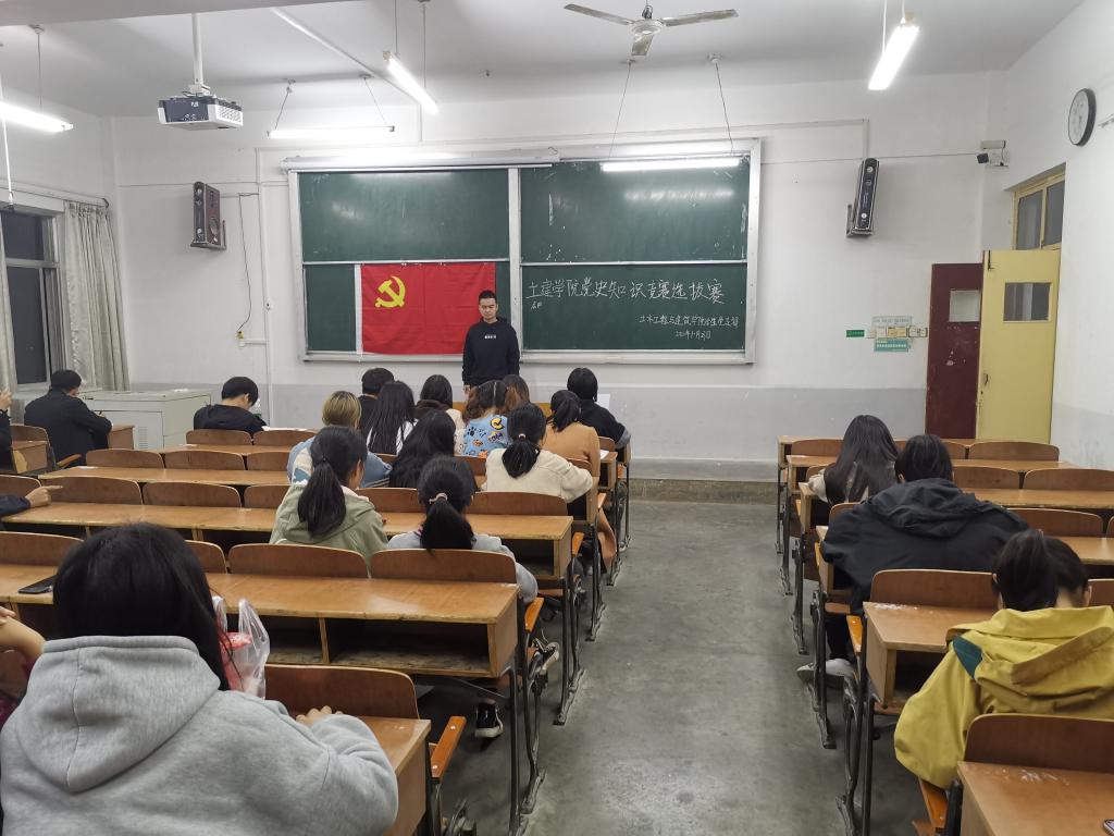 (通讯员 王云松)2020年10月23日晚六点半,3522vip浦京集团官网学生党支部在北区6栋201教室举行了党史知识竞赛选拔赛。