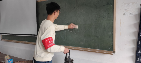 活动开始前,志愿者们早已在教学楼下整队集合。活动负责人为他们讲解义工活动时的注意事项及要求,为他们分发活动袖章。在分配好各自的任务后,志愿者们便开始工作。有的负责清扫楼梯道,有的负责擦除教室黑板,有的负责清洁课桌抽屉等等,他们手拿扫帚、抹布,没有工具的就用手拾取到垃圾袋里。以一丝不苟、认真负责的态度清扫教学楼的每一处角落,他们的每一次弯腰都体现了不怕苦、不怕累的服务精神。志愿者们各司其职,在大家的互相帮助配合之下,高质量的完成了此次清扫活动,使教学楼变得干净整洁,此次活动也圆满结束。